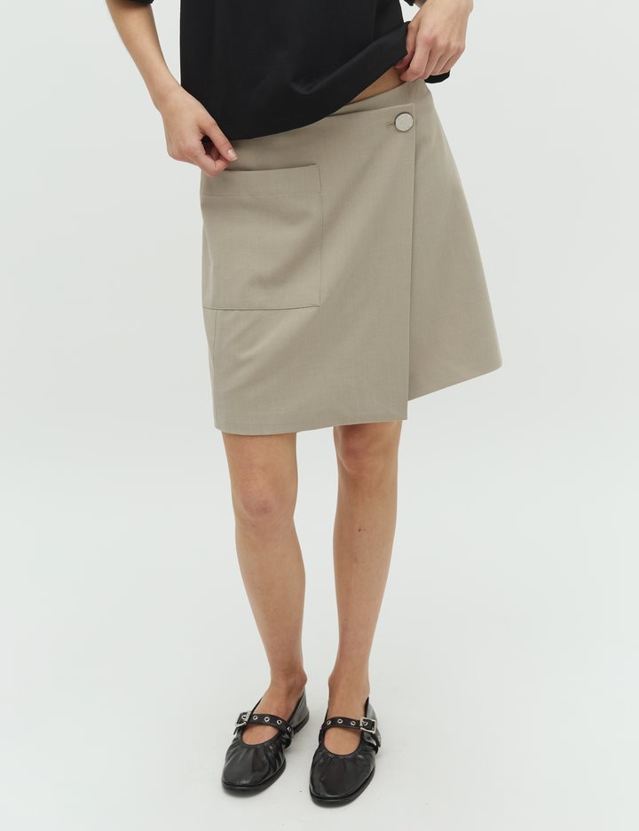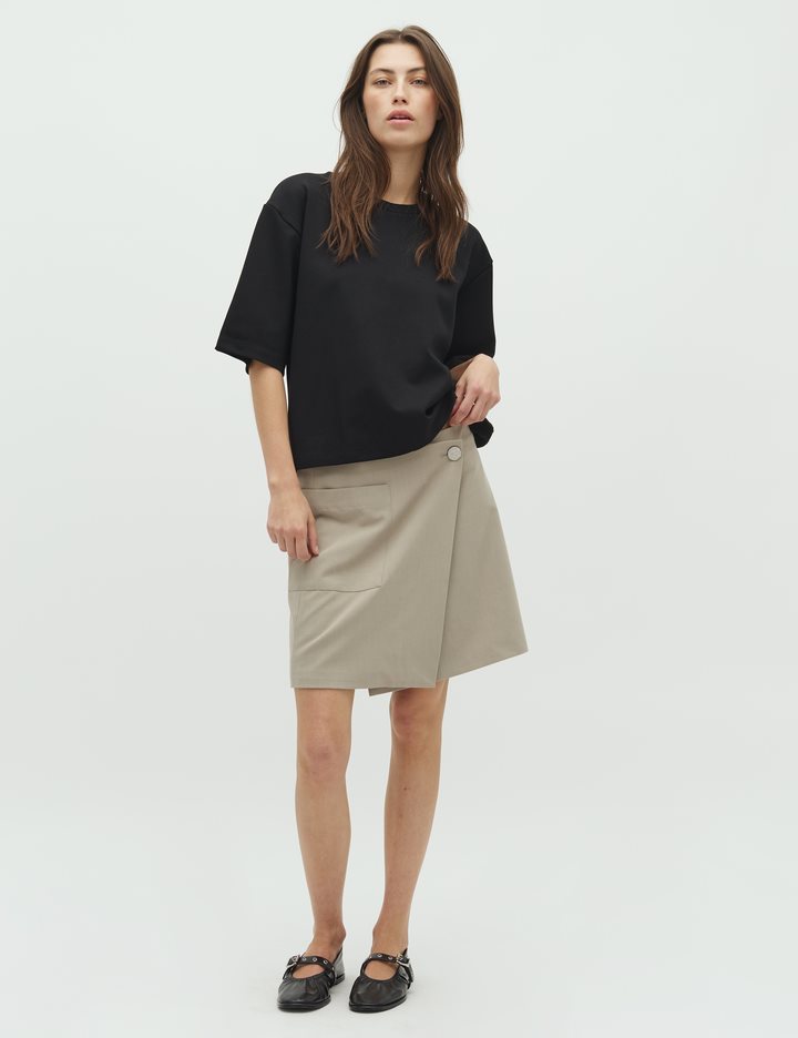 Short skirt with large side pocket.- Material: 63% Recyled Polyester, 33% Viscose, 4% Elastane- Closes at the side with a button- Large pocket- A-line- Mini lengthThe model's height is 176 cm and is wearing size S.