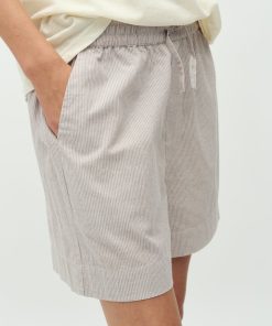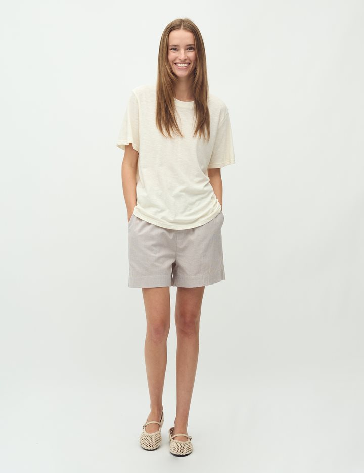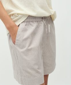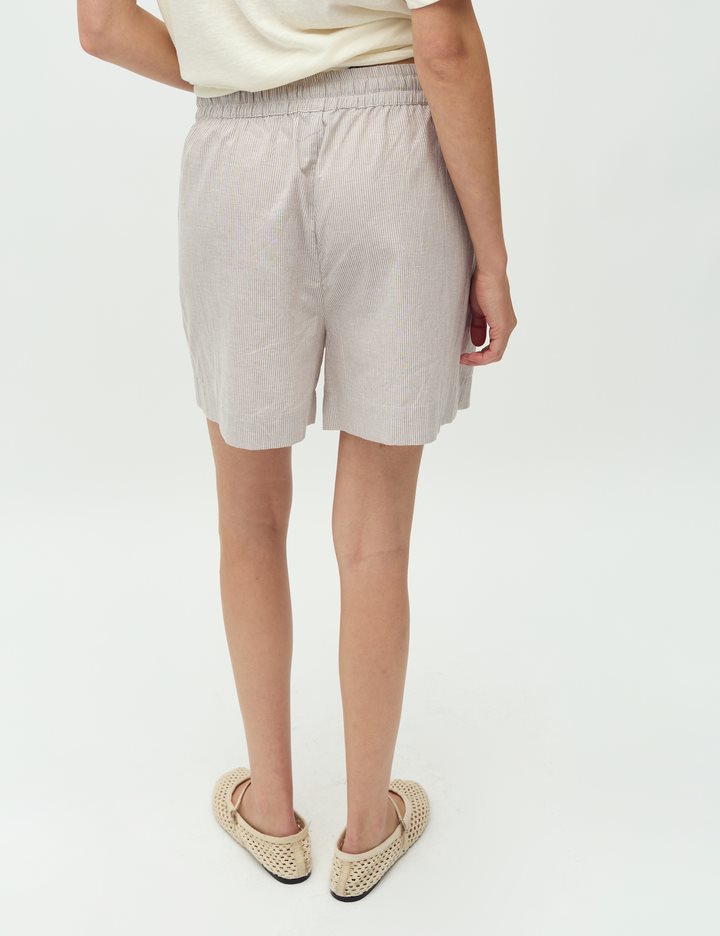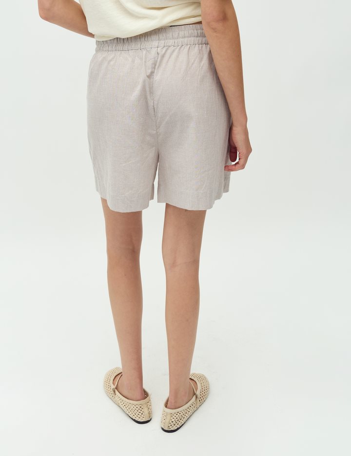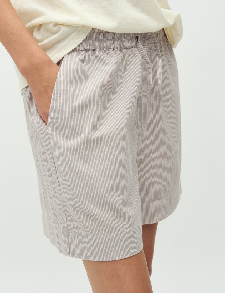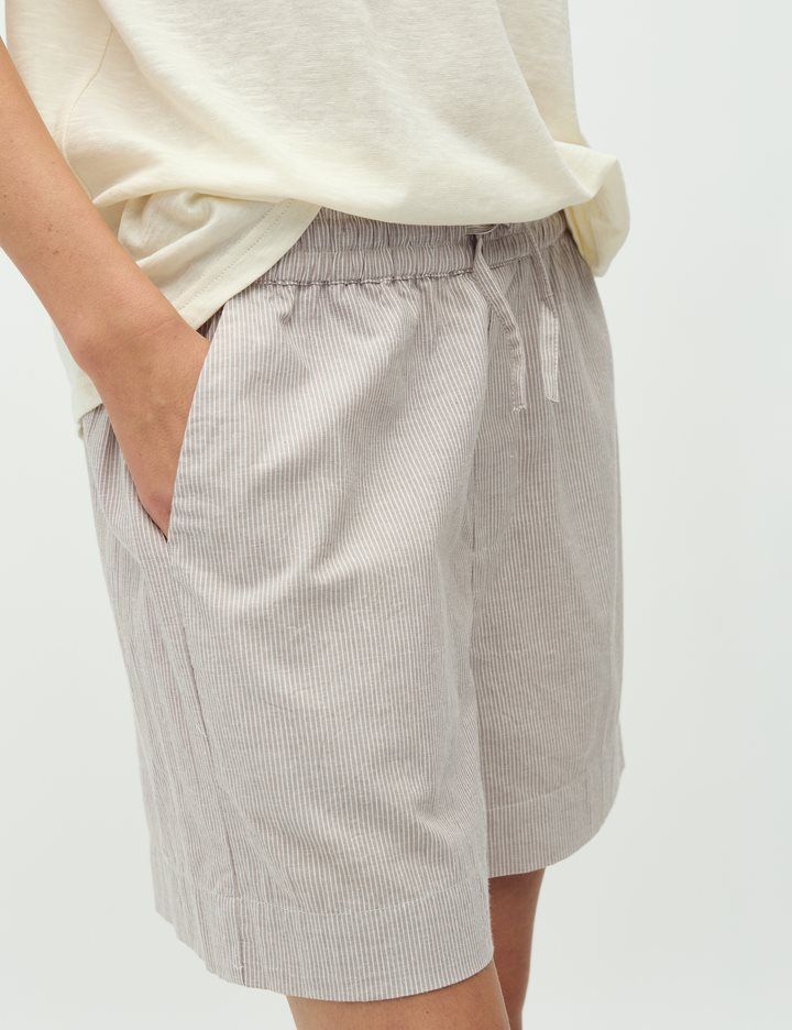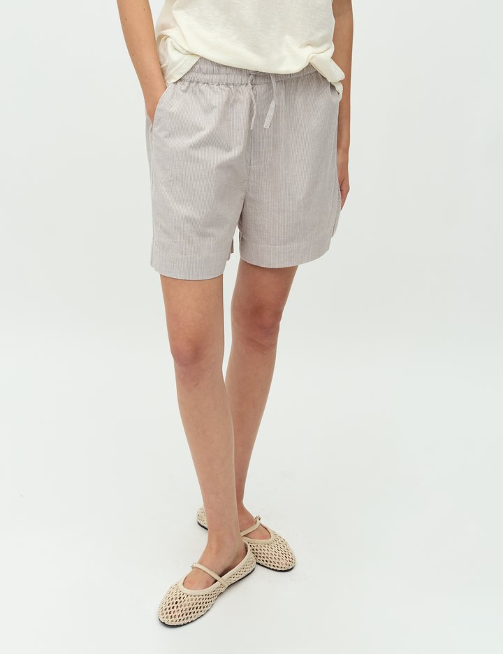 Short loose shorts- Material: 100% Cotton- Loose short shorts- Elastic waist- Adjustable waist- Side pockets- StripedThe model's height is 176 cm and she is wearing size S.