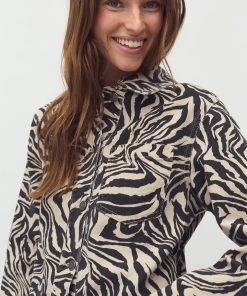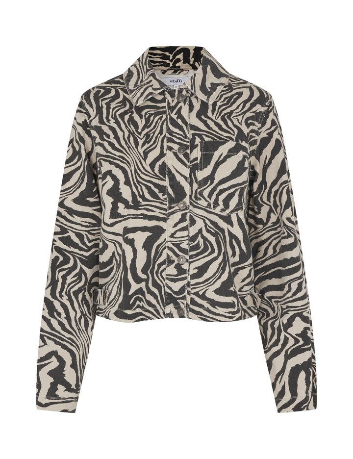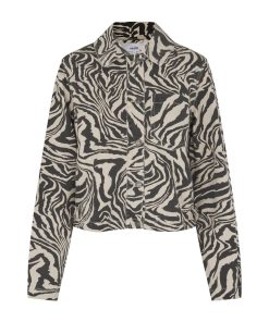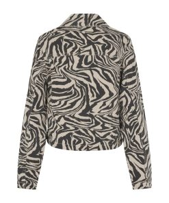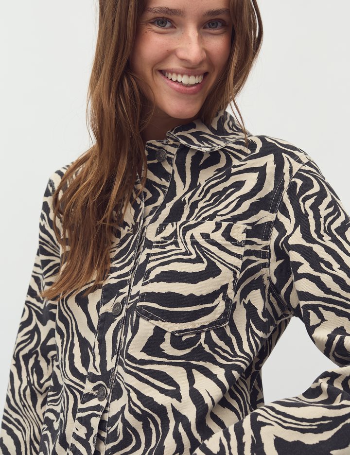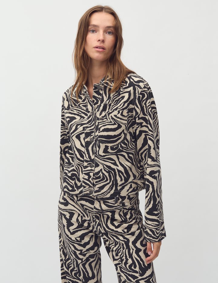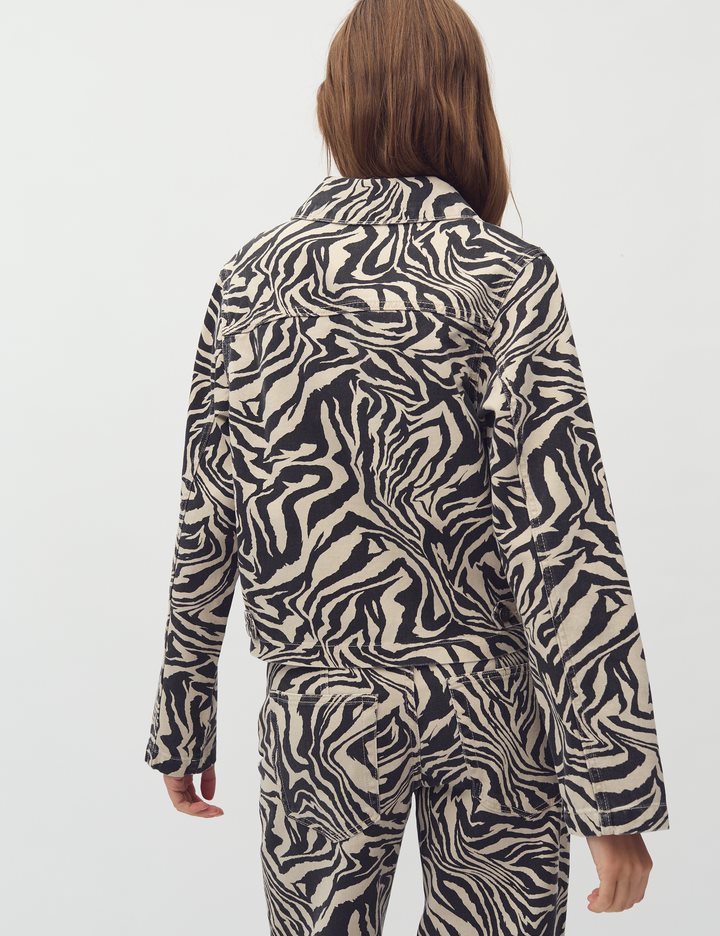 Blazer jacket in zebra print.- Material: 100% Cotton- Long sleeves- Button closure- Shirt collar- 1 chest pocket- Buckles on the side- Boxy fit- Regular lengthThe model's height is 176 cm and she is wearing size S.