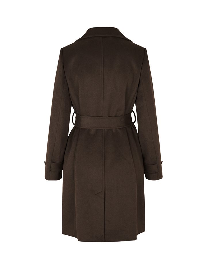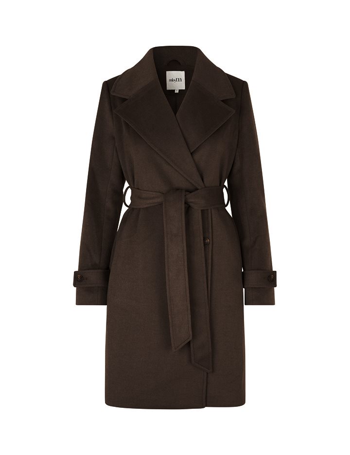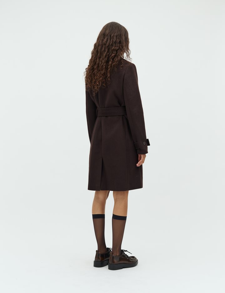 Nice transitional jacket.- Material: 50% Wool, 45% Polyester, 5% mixed fibers (waistband 100% Polyester)- Waist strap- Closes with 2 buttons- Slit at the back- Notch lapel- Button details on sleeves- Midi lengthThe model's height is 176 cm and she is wearing size S.