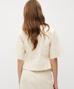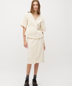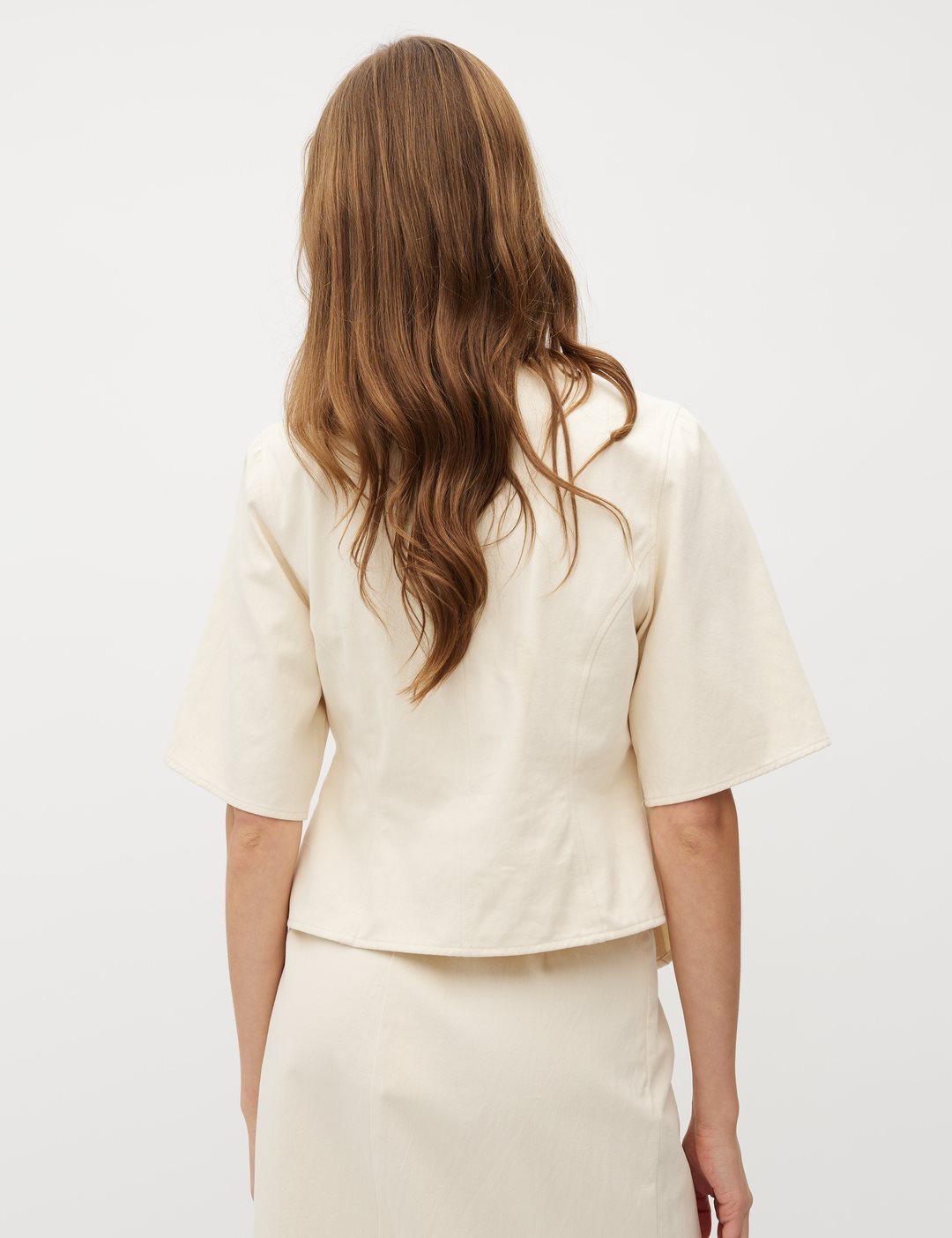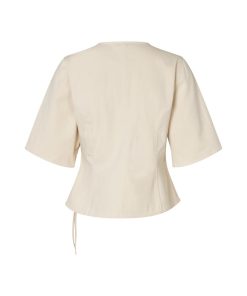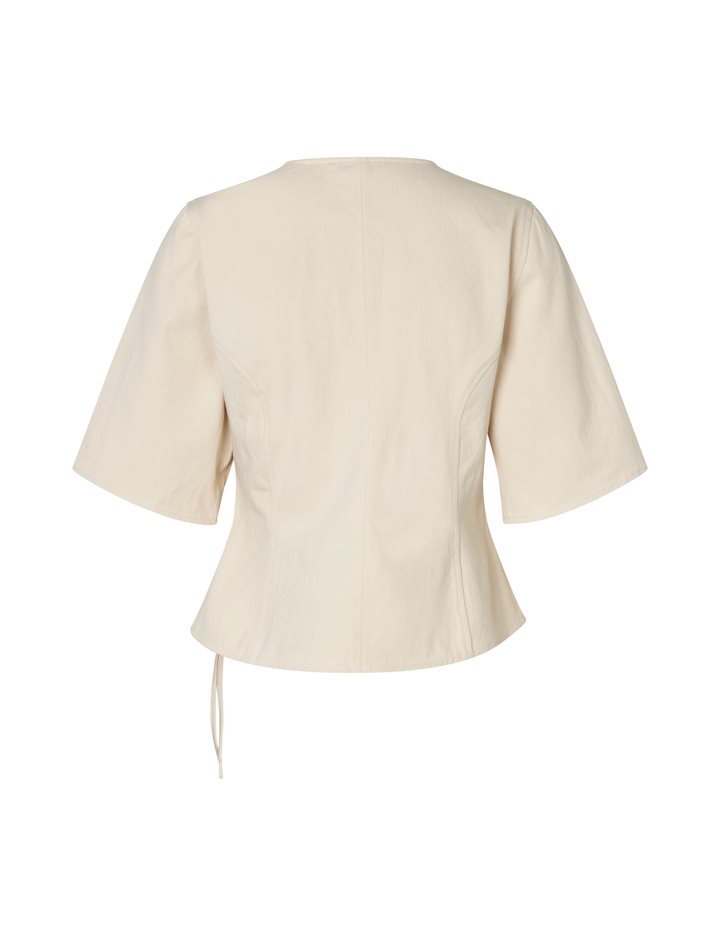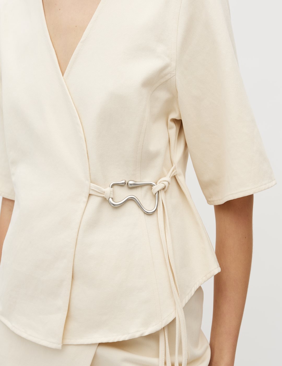 Wrap blouse with belt buckle.- Material: 100% Cotton- Wrap- V-neck- 3/4 sleeves- Regular lengthThe model's height is 176 cm and she is wearing a size S.