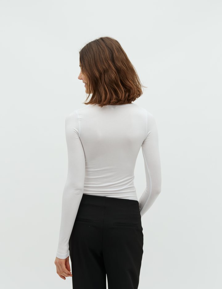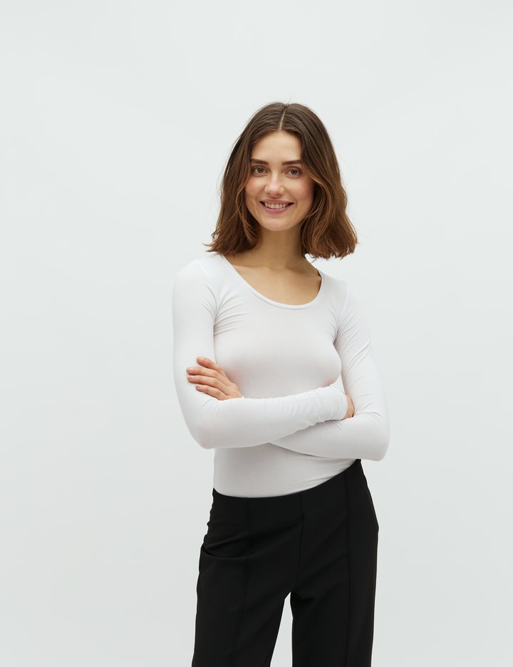 Basic top from mbyM GG. – Stretchy and soft – Long sleeves – Round neck – Tight fit- Colour: Optical White- Material: 95% TENCELâ„¢ Modal,5% Elasthane