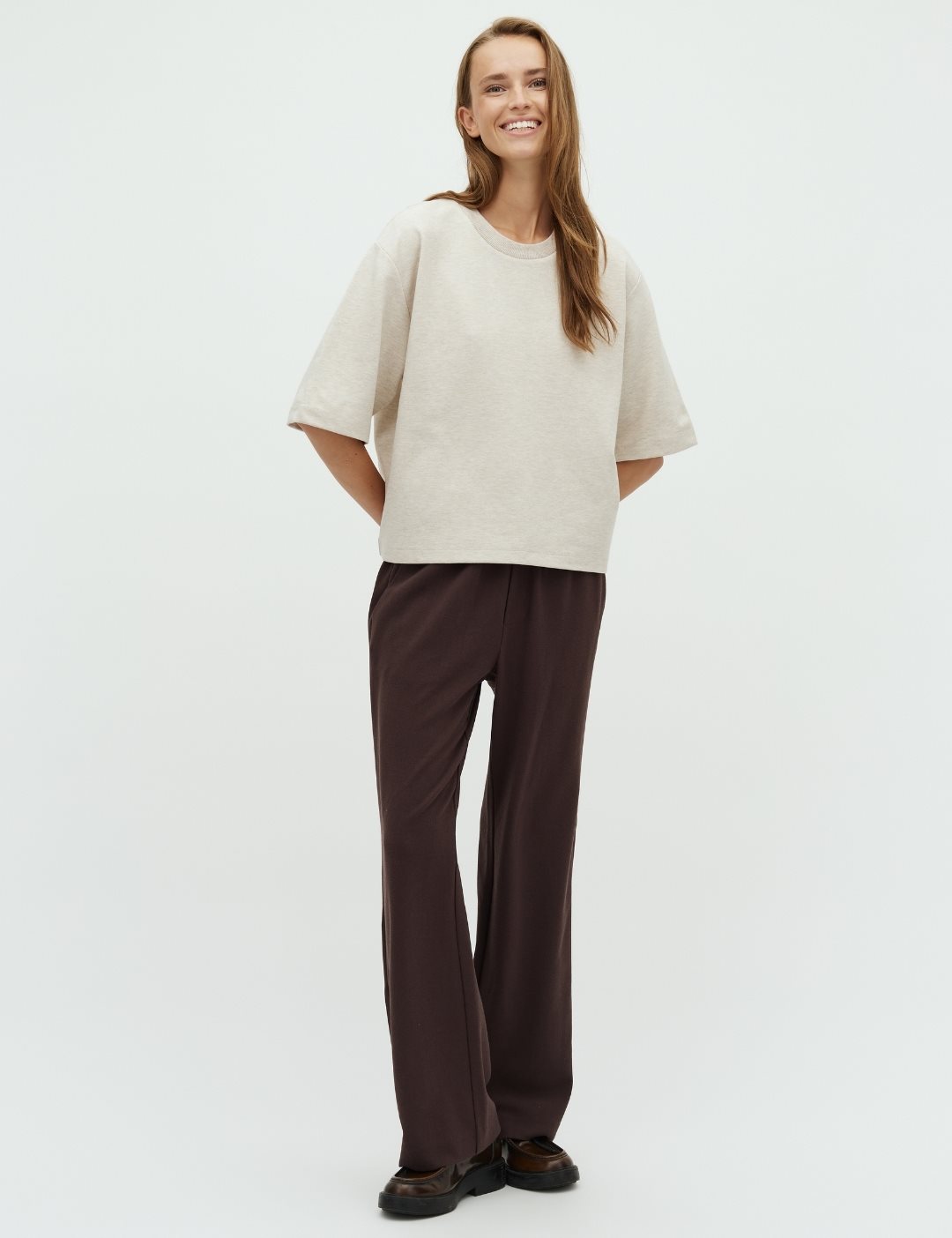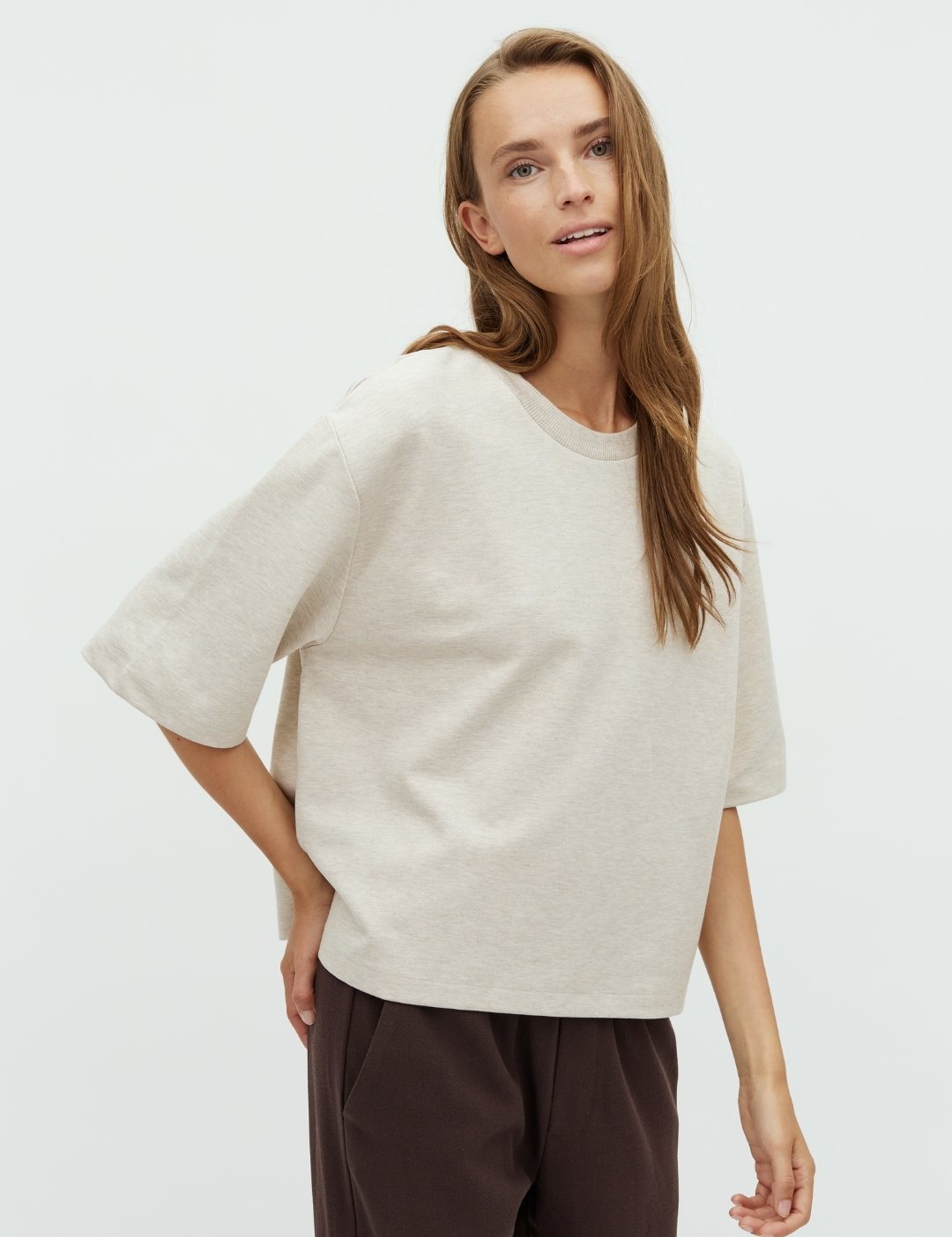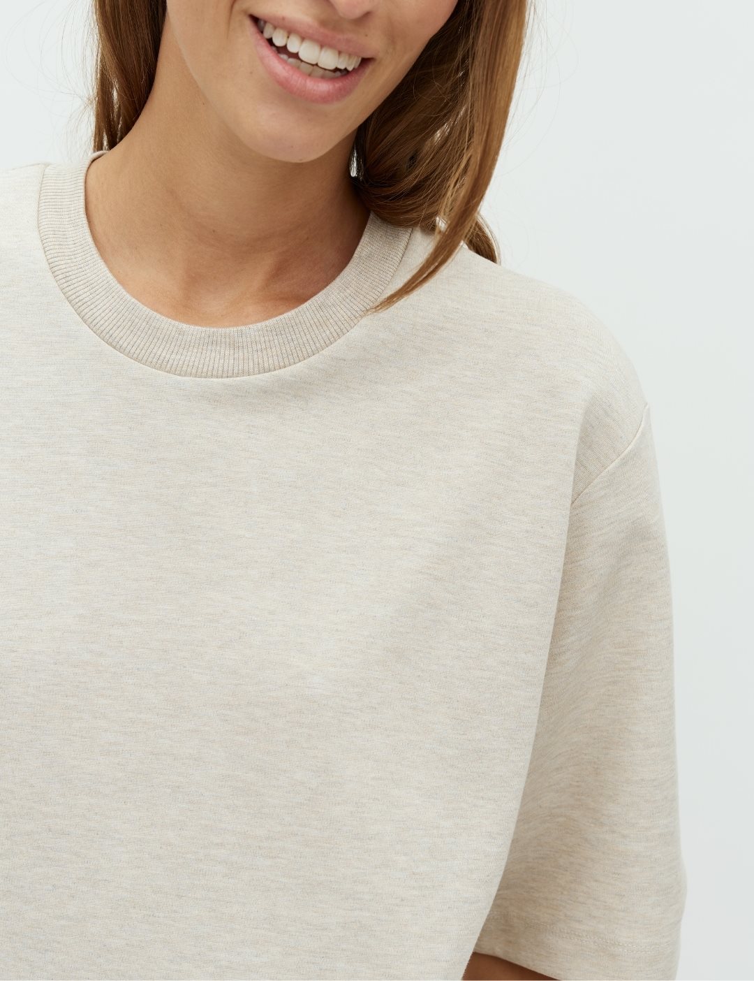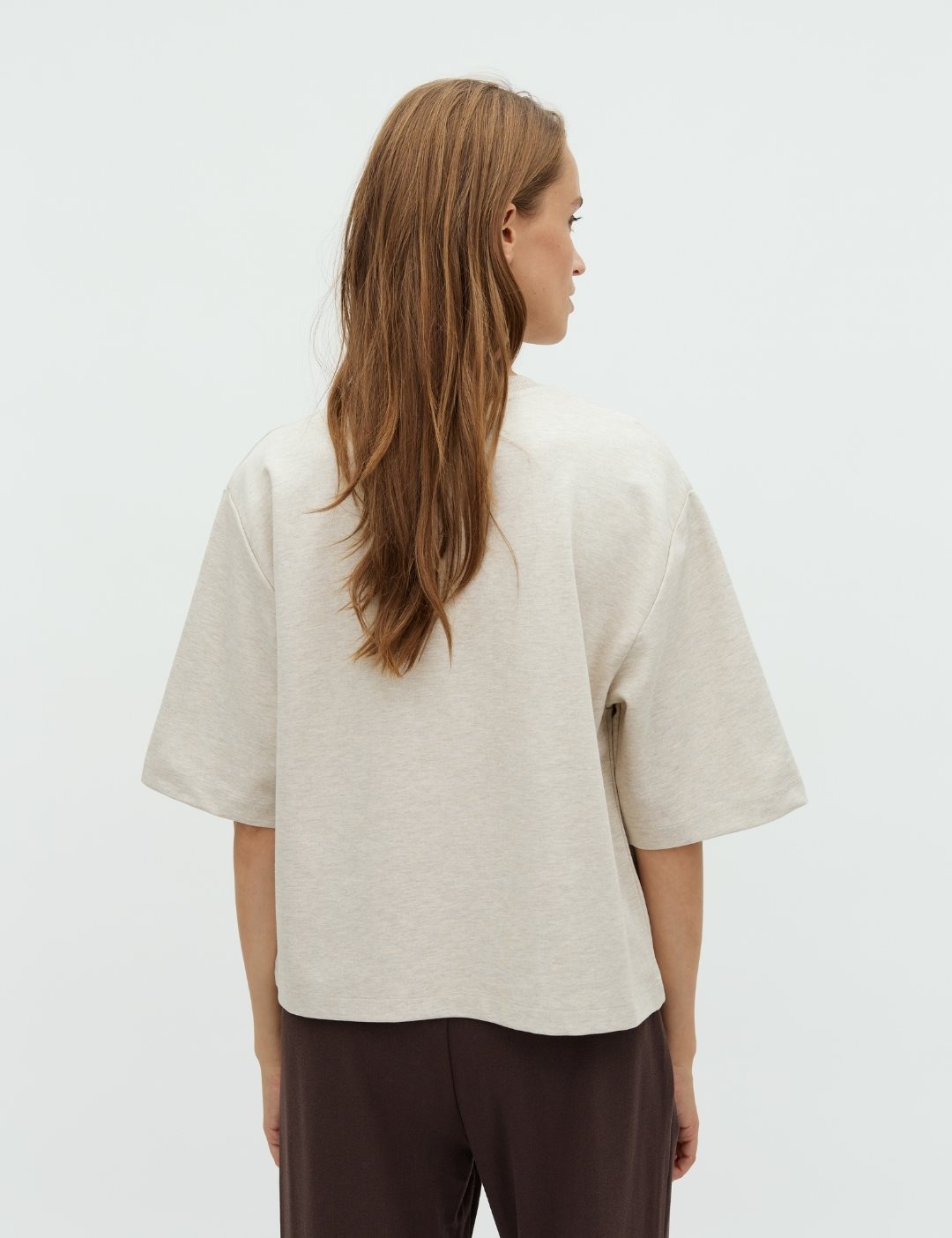 Loose fit t-shirt with short sleeves.- Material: 74% Viscose, 23% Polyamide, 3% Elastane- Short sleeves- Round neck- Loose fitThe model's height is 176 cm and she is wearing size S.