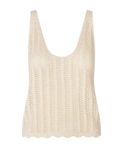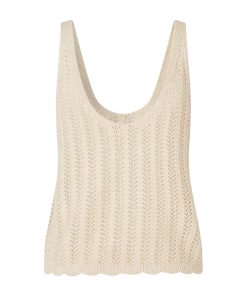 Knitted top with a deep neckline.- Material: 100% Cotton- Wide straps- Deep v-neckline- Relaxed fit- Wavy hemThe height of the model is 176 cm and she is wearing a size S.