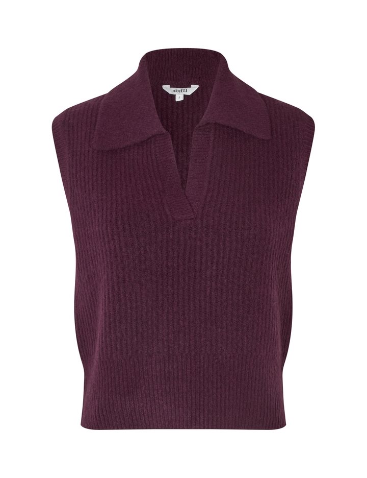 Knitted vest.- Material: 51% Acrylic, 36% Nylon, 7% Elastane, 6% Wool- Knit- Collar- Loose fit- Regular lengthThe model's height is 176 cm and she is wearing a size S.